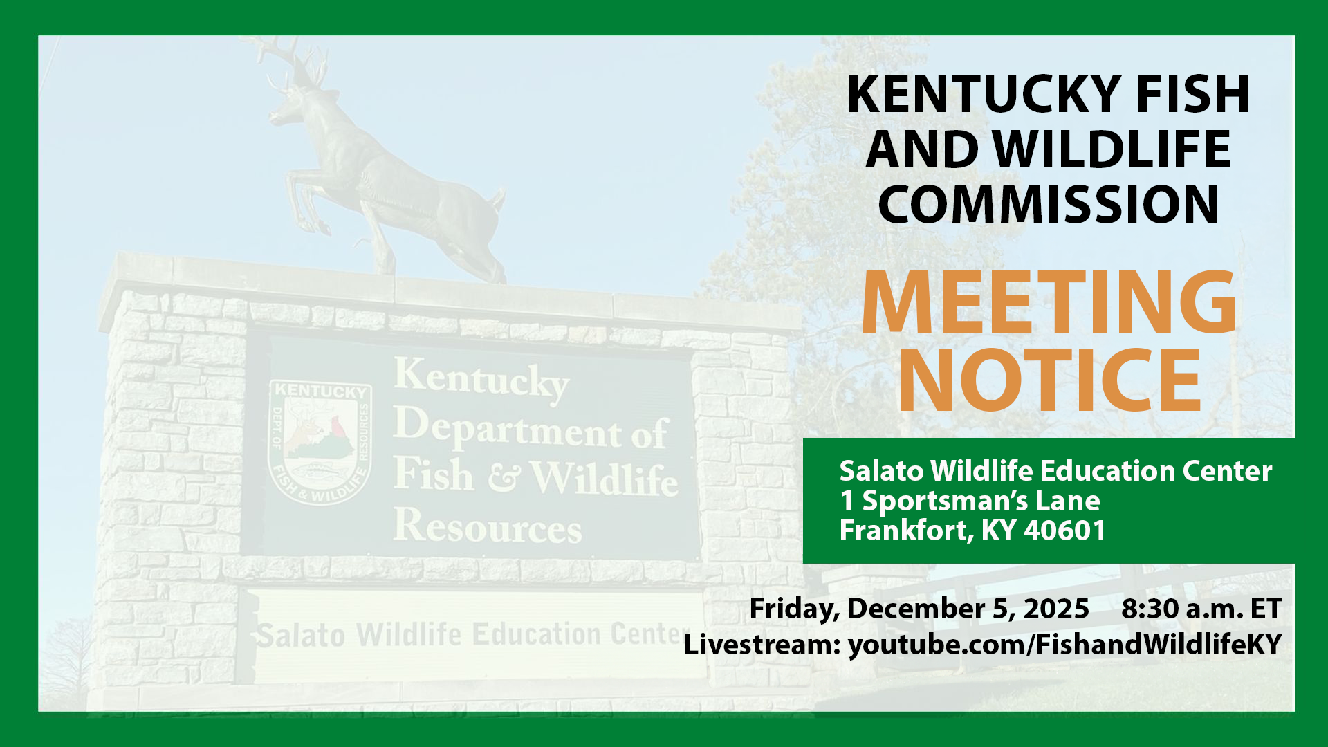 FRANKFORT, Ky. (Nov. 26, 2025) — The Kentucky Fish and Wildlife Commission has scheduled a meeting starting at 8:30 a.m. (EST) on Friday, Dec. 5, 2025.